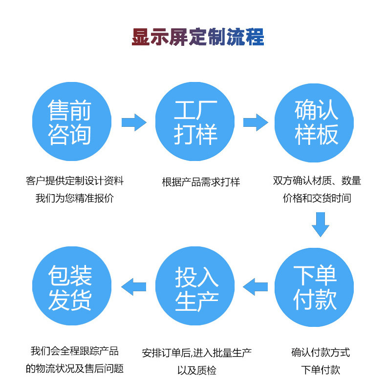The main business is Innolux , Boe, Hancai, AU Optronics, LG, Hua Ying, Sharp and other first-line brands of LCD displays provide customers with all-round services. The main specifications include a full range of LCD products from 4.3 inches to 32 inches, and various LCD accessory products can be provided according to customer needs.